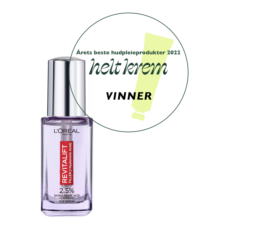 L'Oréal Paris Revitalift Filler Eye Serum er en favorittlansering fra 2022. Dette serumet gjør underverker for mørke øyne, poser og fine linjer. Det er et serum, som skal påføres lett fuktet hud og deretter “forsegler” man fukten med en lett øyekrem eller solkrem. Hyaluronsyre, niacinamide, koffein og derivat av C-vitamin gjør dette til et effektivt serum som forbedrer huden under øynene, i tillegg til at påføringskulene gir den lille spafølelsen, som man trenger i livet når man står opp i otta.
