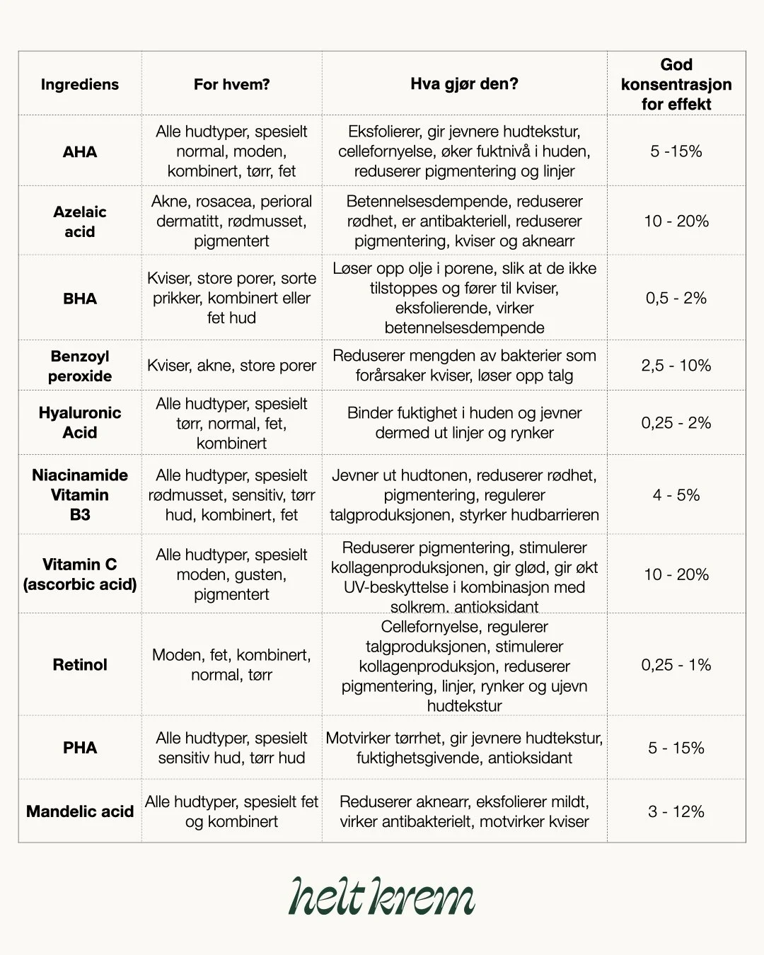 Saken kan inneholde annonselenker. Ingredienser og formler bestemmer hvilke produkter vi omtaler. Prosenter av salg bidrar til å dekke kostnader for drift av heltkrem.no, og det er vi evig takknemlig for. Takk! Les mer om hvordan vi jobber her.