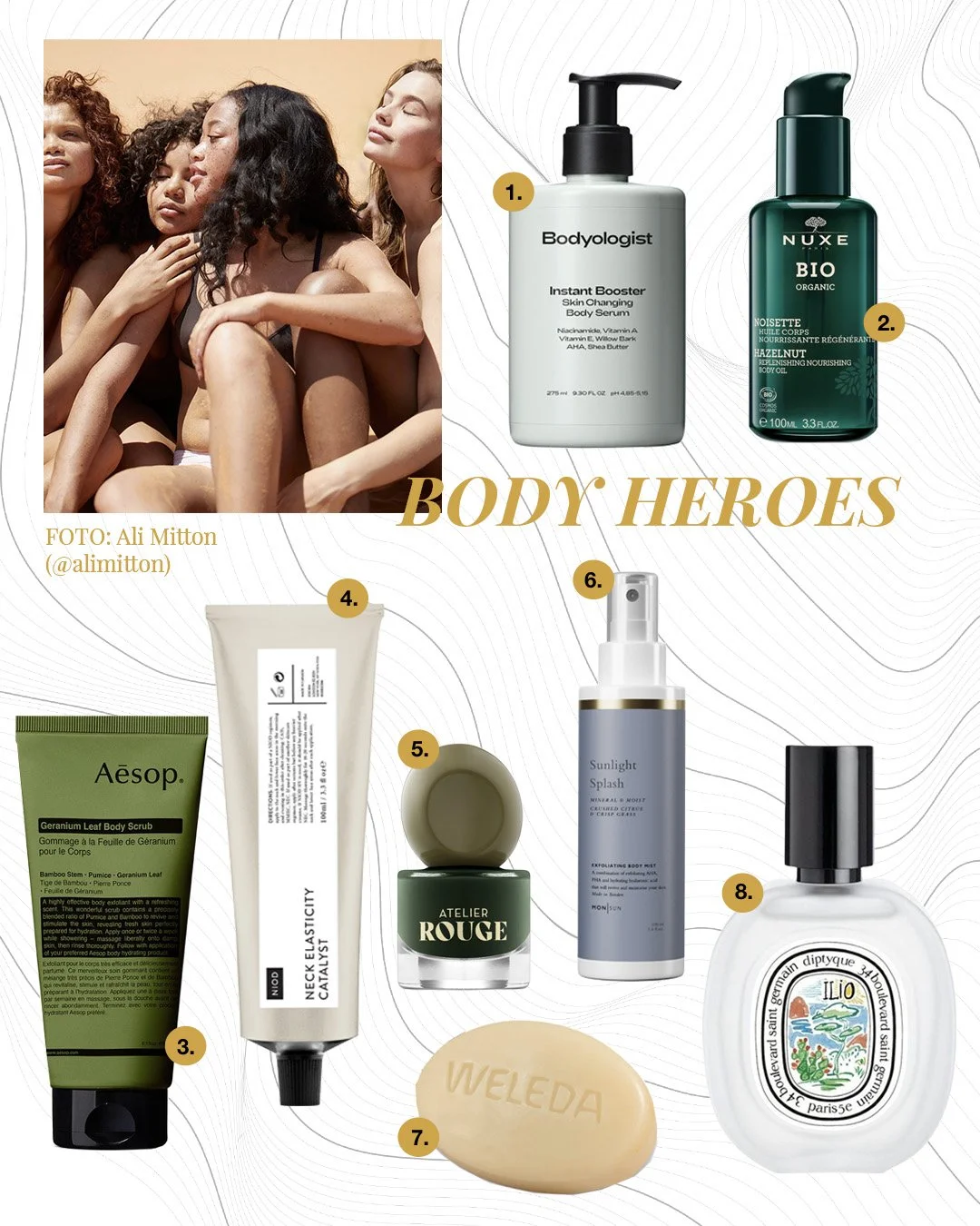 1. Denne trenden med aktive ingredienser til kroppen har i grunn vært spådd lenge, men det har vært langt mellom favorittproduktene, inntil nå. Selvfølgelig måtte det noen dansker til for å levere skikkelig godt. Bodyologist er skapt av Charlotte Winther Nørlev og Didde Juul, som i mange år jobbet som innkjøpere til Magasin du Nord i København. Det sier seg selv at de vet hva de driver med. Bodyologist Instant Booster Skin Changing Serum har ingredienser som niacinamide, retinol, melkesyre og sheasmør. Disse ingrediensene bidrar til å jevne ut hudtonen, redusere nupper og tilføre fuktighet, slik at huden blir myk og føles fastere. Sortimentet til Bodyologist bjudar også på krem, nattkrem til kropp(!), skrubb og dusjsåpe. Forpakningene er rene, kule og praktiske og kler badehylla perfekt.