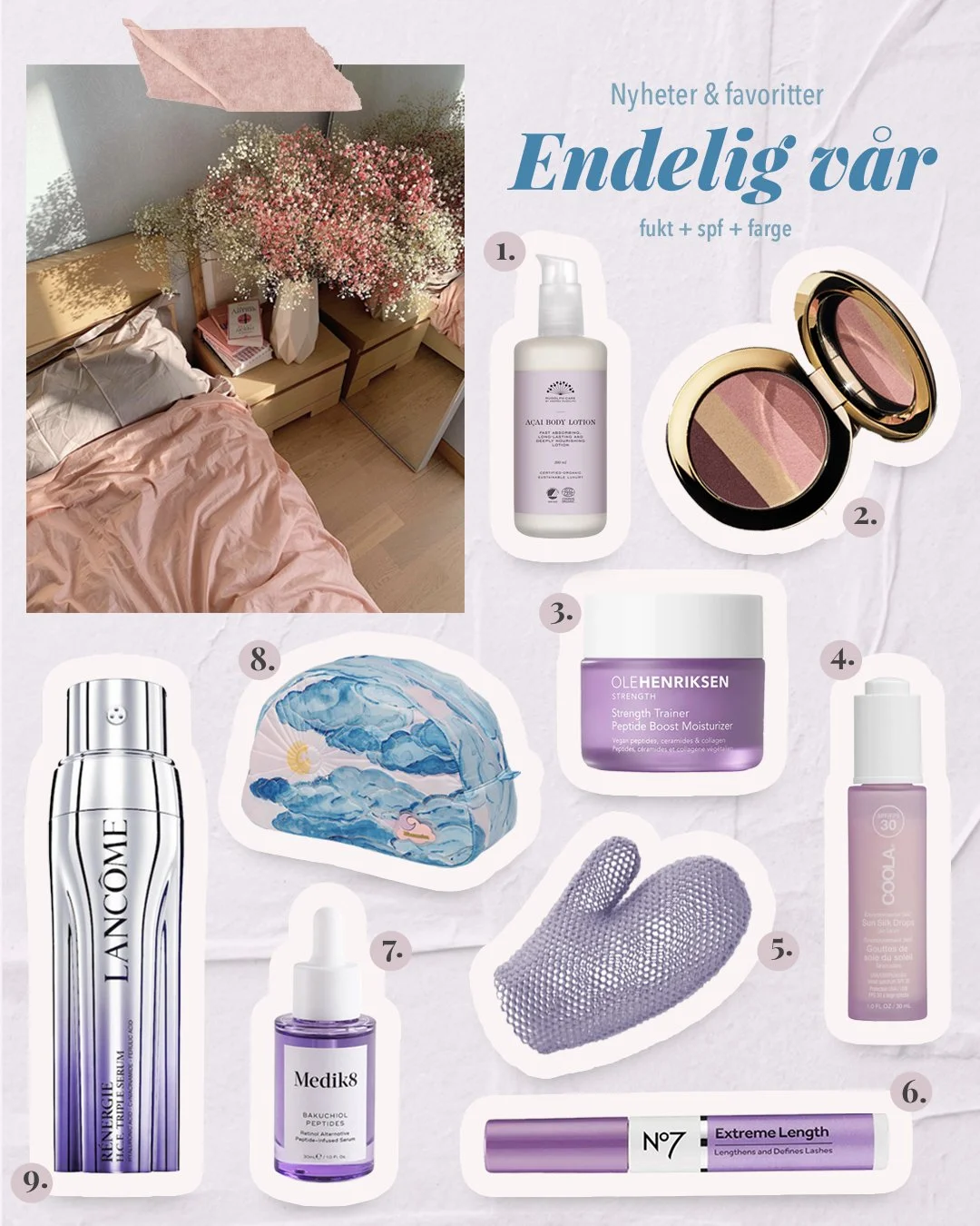Vi har lengtet etter vår og endelig er den her. SPF er viktig året rundt, men spesielt nå som UV-strålene blir sterkere. Disse produktene og fargene gjør oss litt ekstra glad akkurat nå.